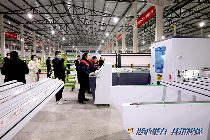 會議結束后,參會人員一起參觀總部工廠。為了更好的滿足市場需求,完善的生產條件,總部在原有生產基地上又擴大一倍;為保證產品質量和貨期,公司引進4.0智能生產設備,實現智能生產基地與自有供應鏈;公司把握住了當代人的真實訴求,自主研發的5款新品已上市,在技術與設計上達到了更好的效果,適合國內市場現在需求的門窗。